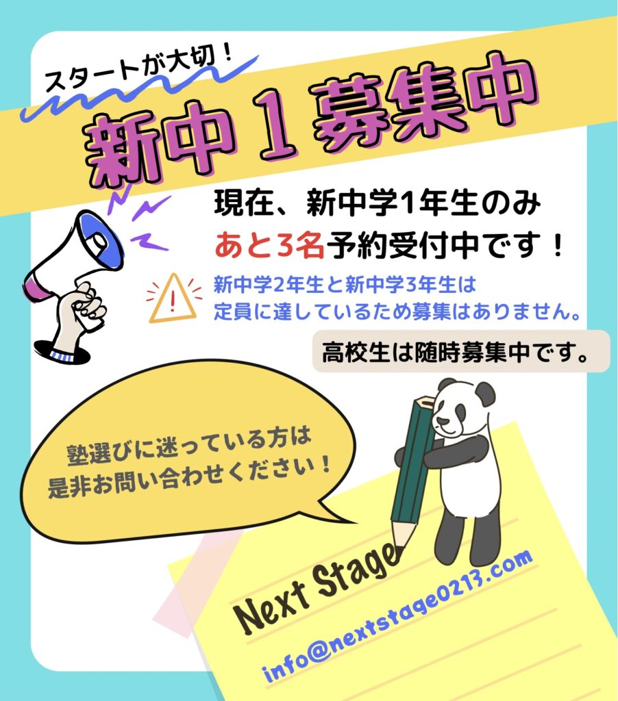 2026.03.24 2024.07.10 こんにちは!学習塾 Next Stageです。 Next Stageでは、中学1年生から高校3年生まで幅広い学年を教えております。 インスタグラムも投稿中です! ページはこちら↓Next Stage Instagram